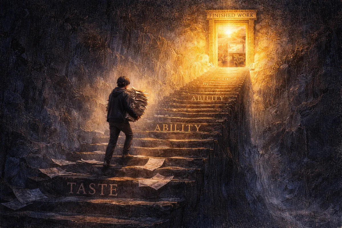 You get into creative work because you love great work. You’ve watched the movies, listened to the podcasts, read the essays, scrolled the feeds. Your taste is actually pretty good. That’s the problem. For a long time, your output won’t live anywhere near your standards. You’ll make things that are trying to be good, that want to be good, but just aren’t.