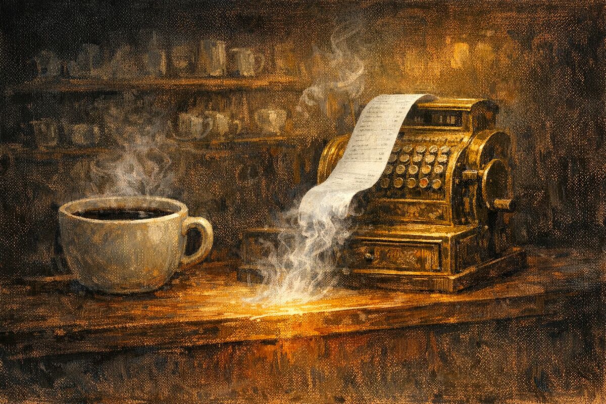 The barista returns with the coffee.